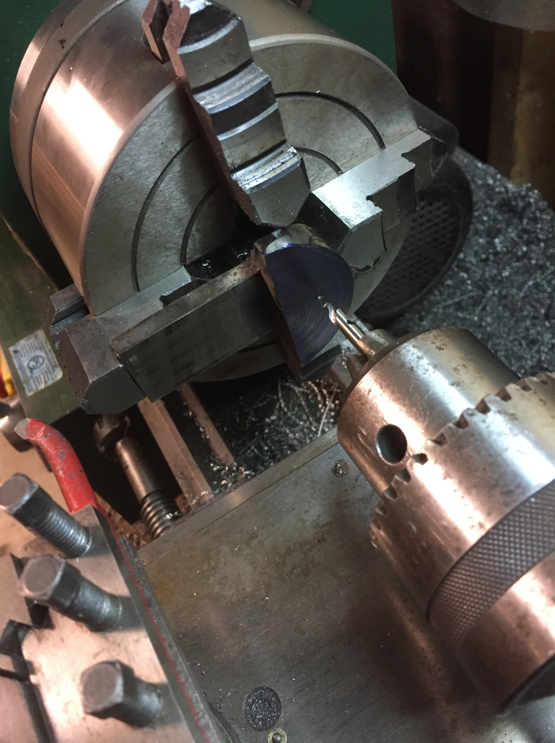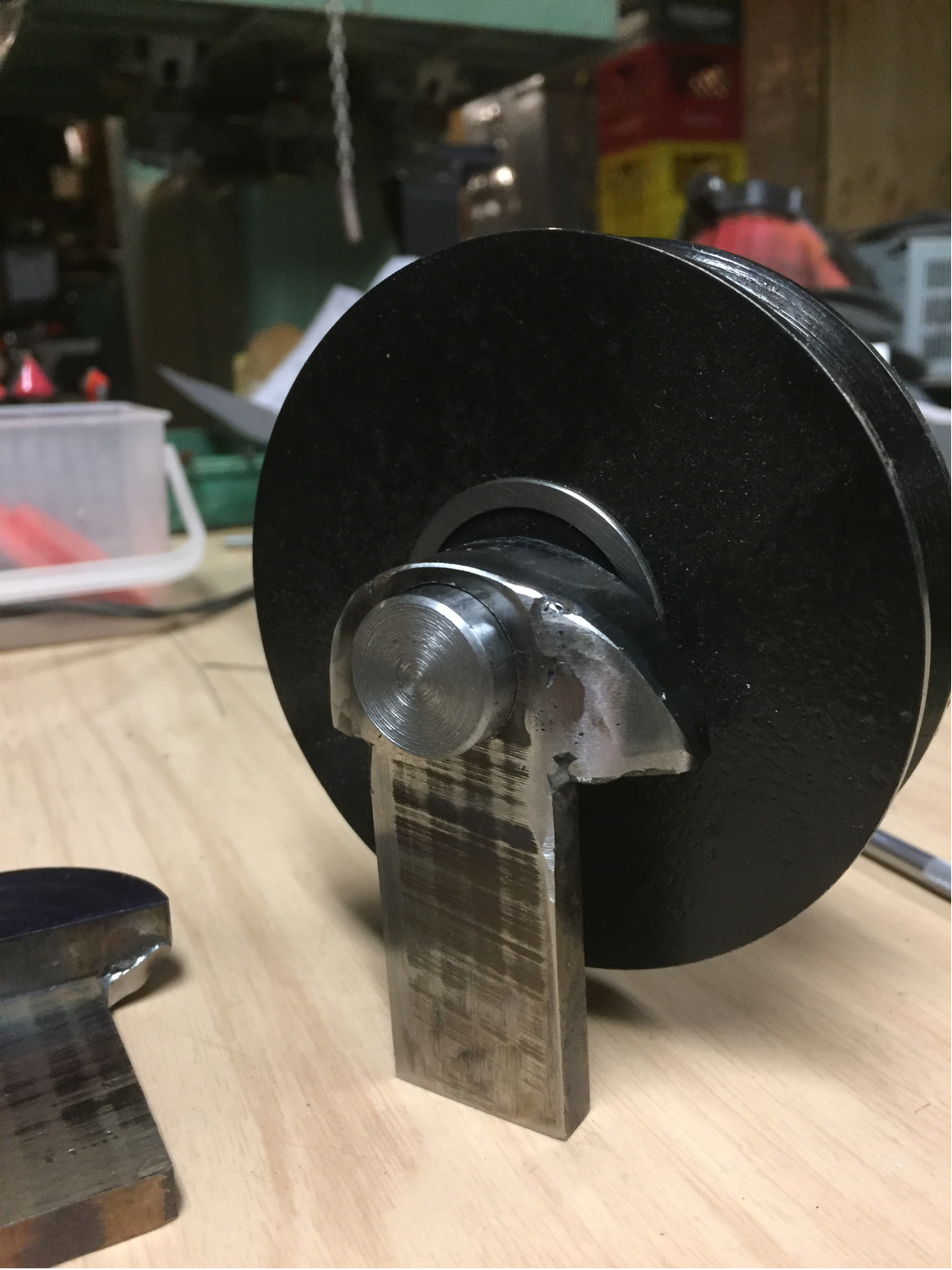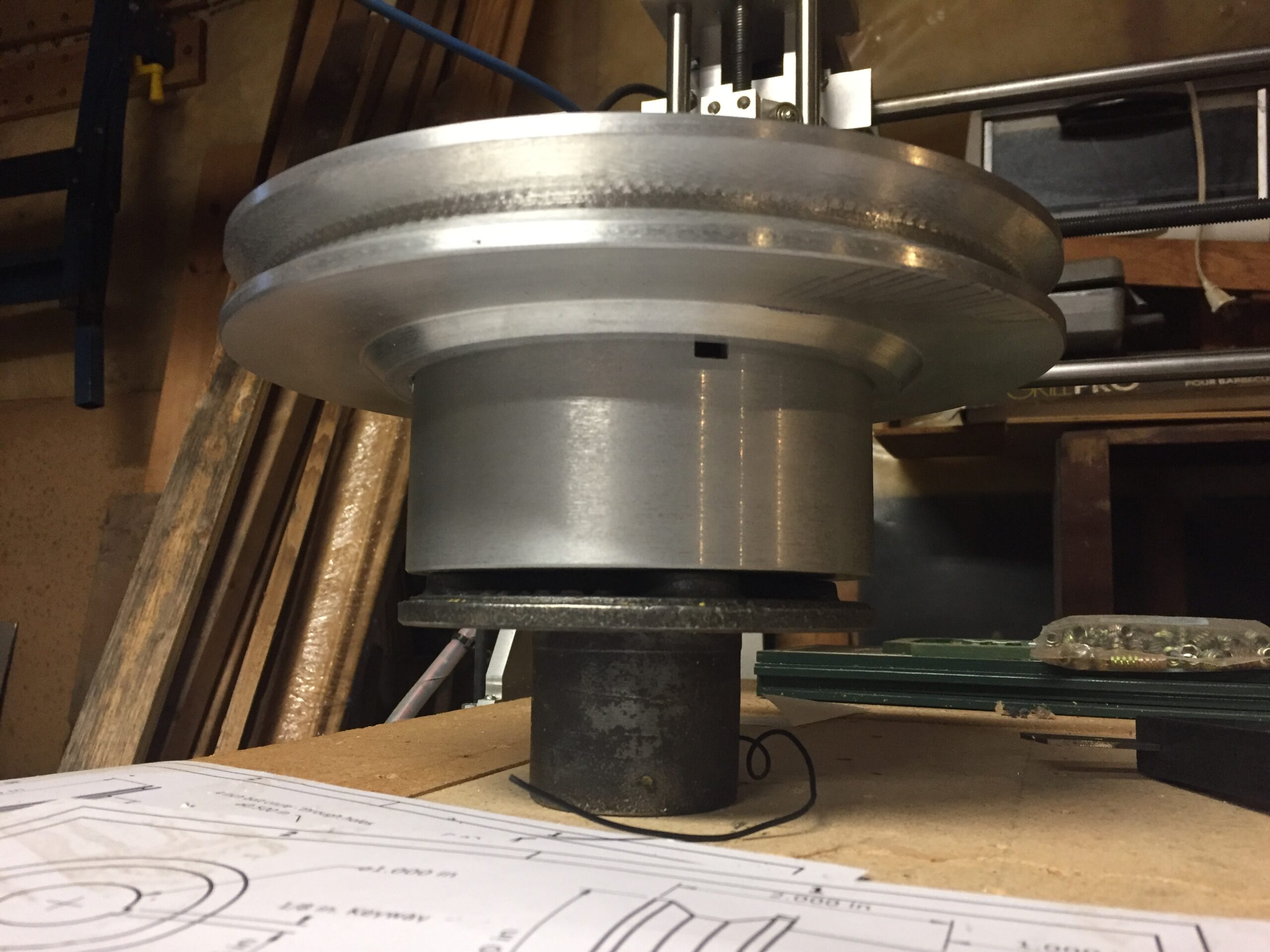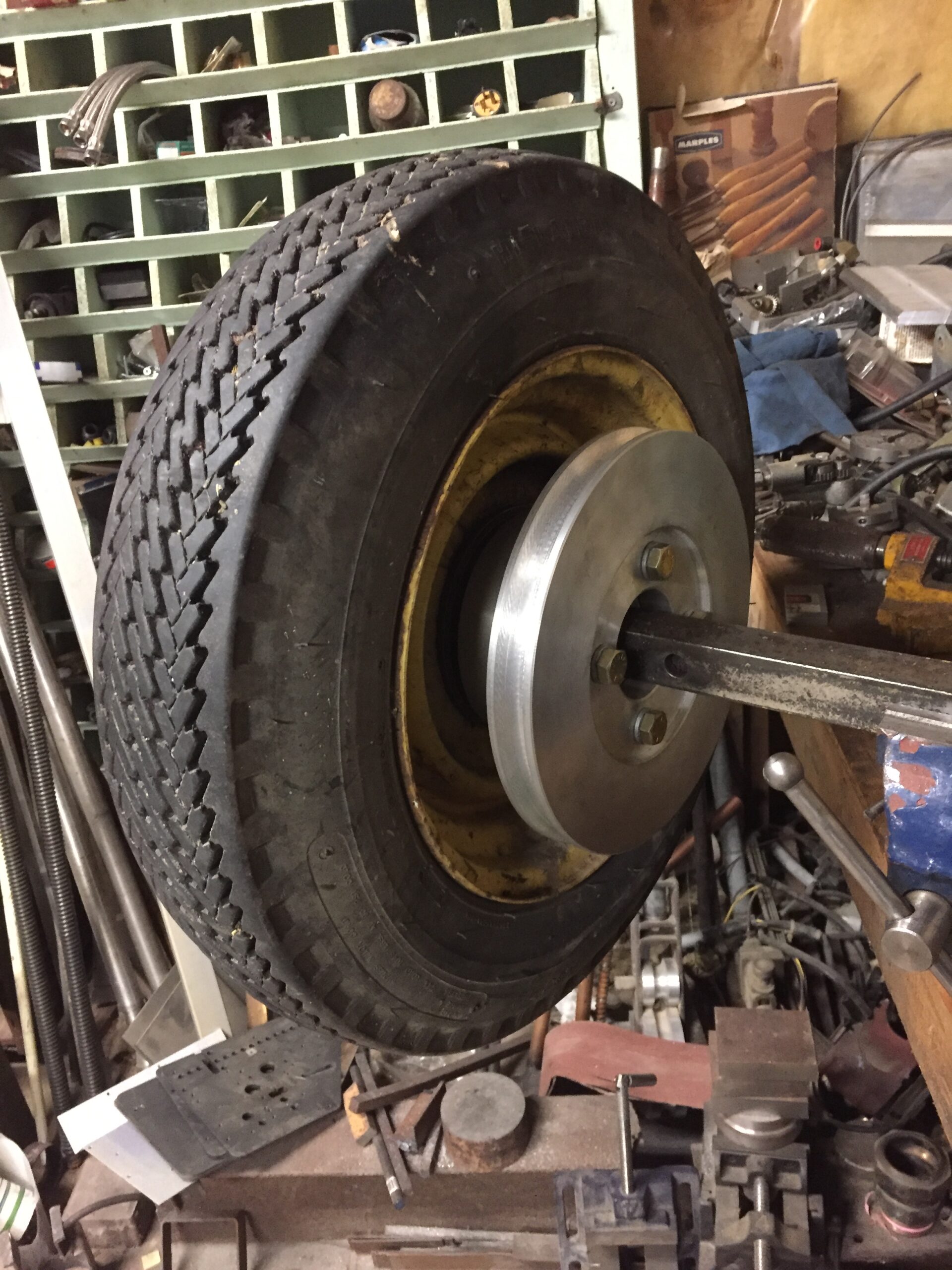 Band wheel drive assembled with +/- 0.005" wobble. I made custom bolts to attach the drive adapter to the hub. They stick out the opposite side of the hub to act as studs for mounting the tire.
