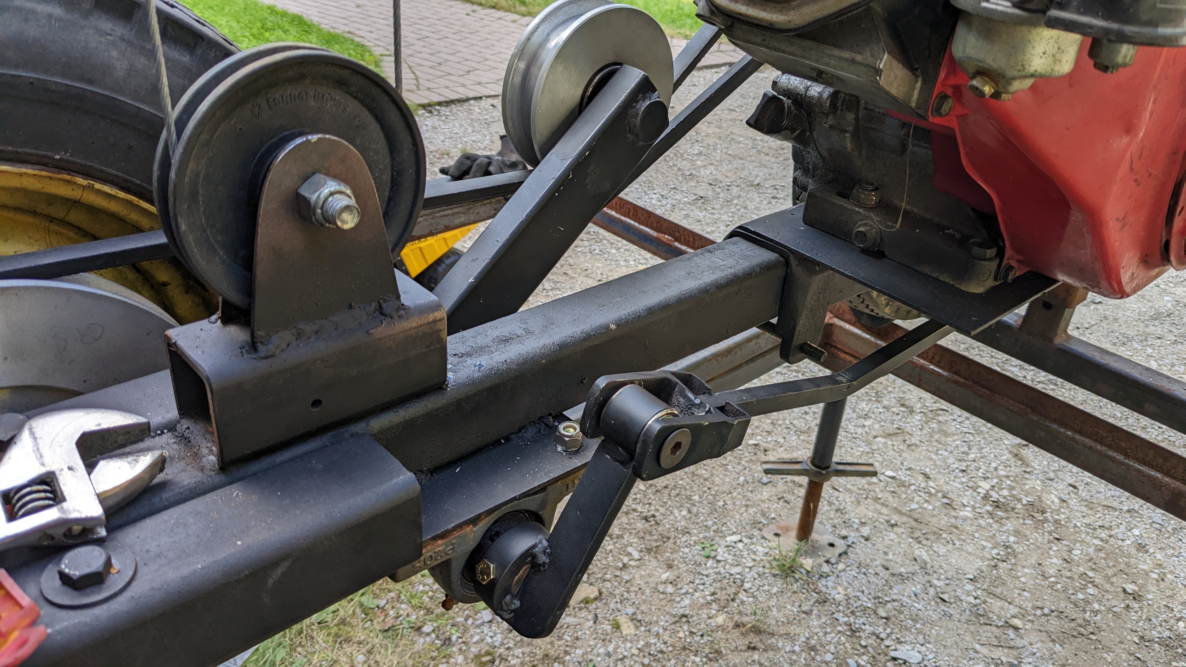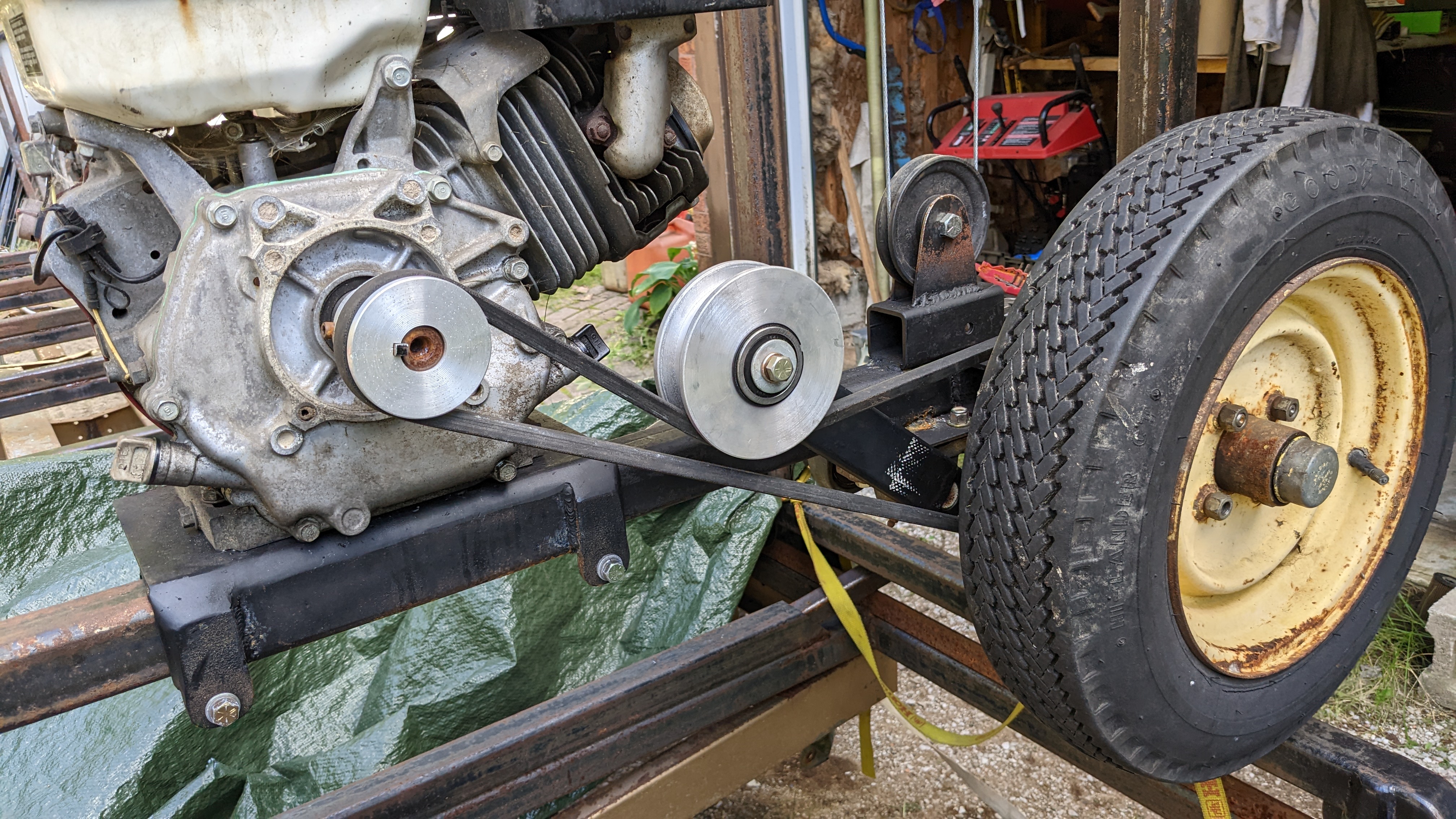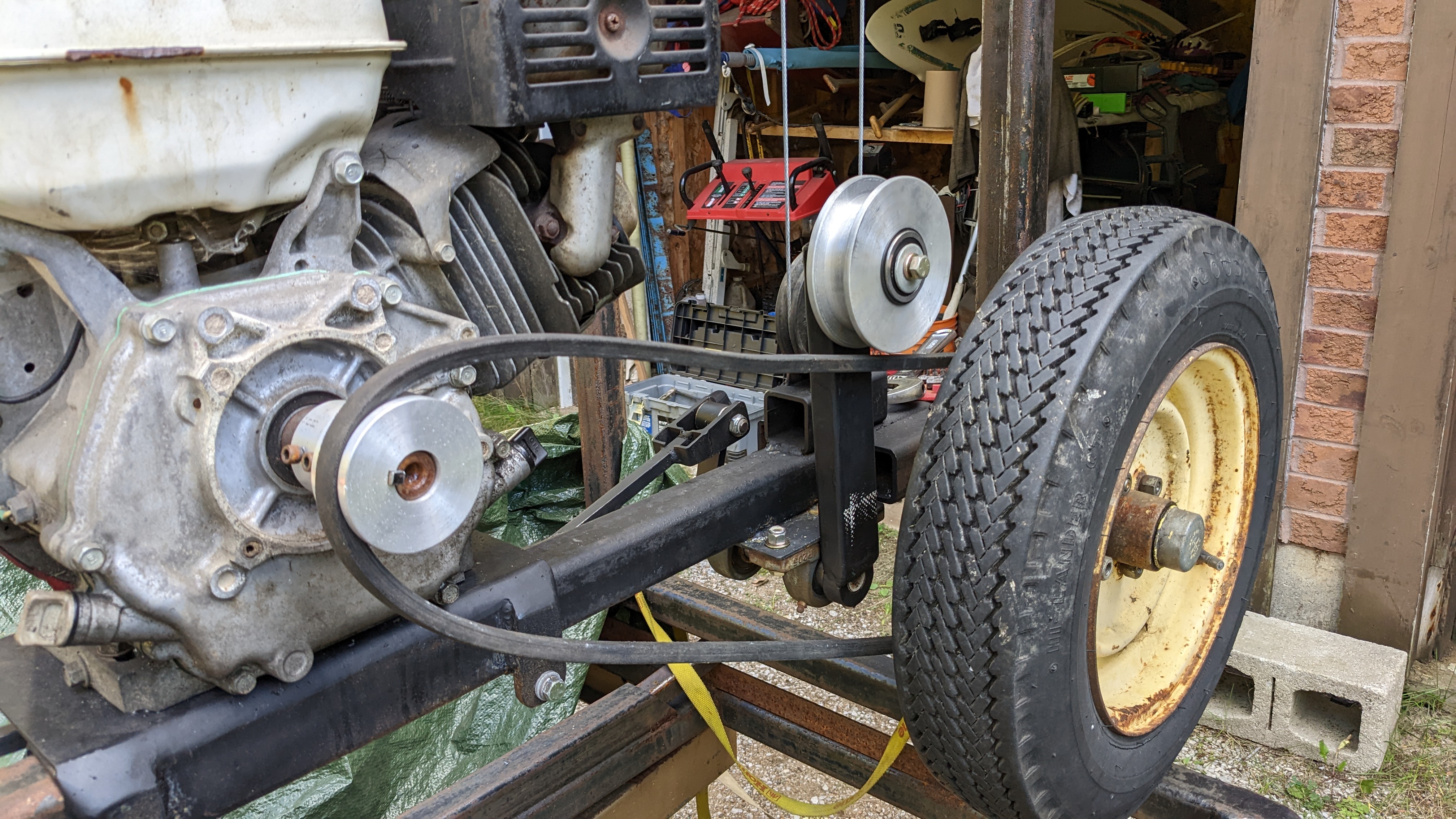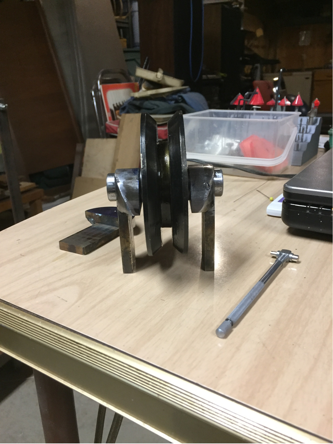 Band wheel drive assembled with +/- 0.005" wobble. I made custom bolts to attach the drive adapter to the hub. They stick out the opposite side of the hub to act as studs for mounting the tire.