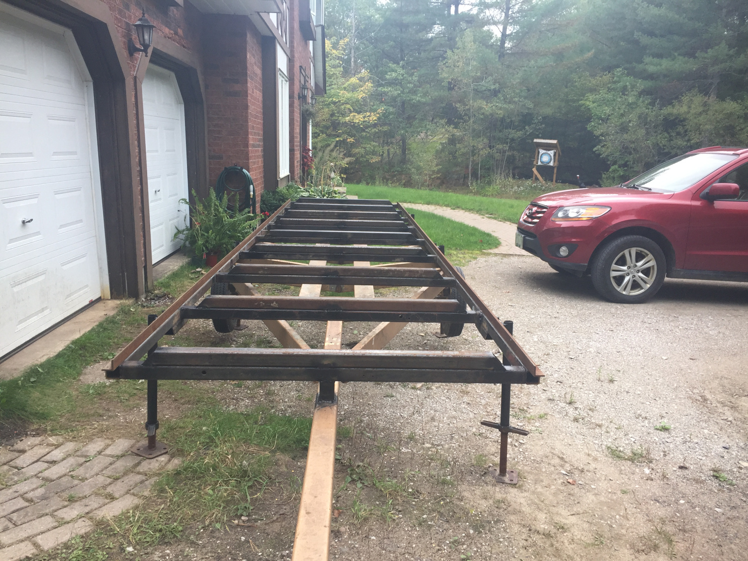 I got tired of working on uneven concrete or bucking saw horses, so I took some time and built a fabrication table with a fold down plasma cutting shelf. Makes life a lot easier.